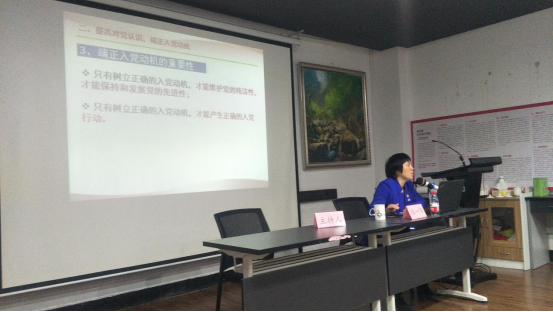 随后,就如何提高对党认识及端正入党动机,徐书记分析了当前大学生入党动机不端正的三方面因素,并指出只有树立正确的入党动机,才能维护党的纯洁性,才能保持和发展党的先进性;只有树立正确的入党动机,才能产生正确的入党行动。