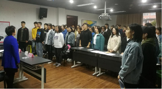 图为党校开班仪式,全体起立唱中华人民共和国国歌