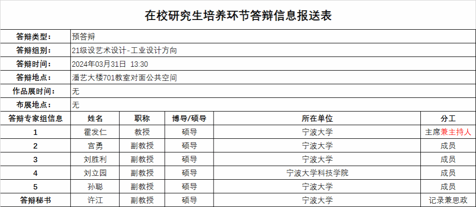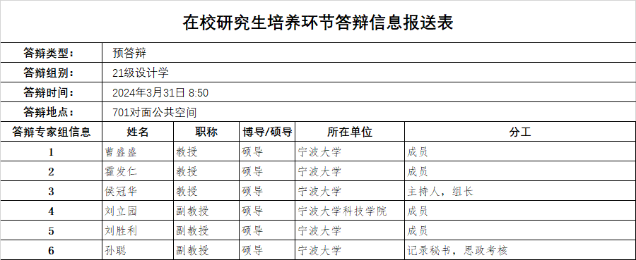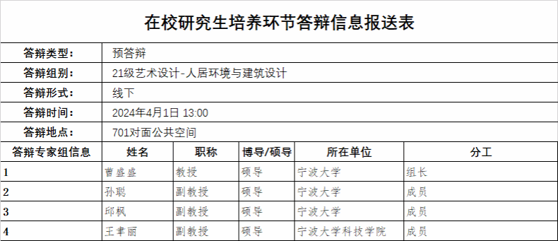 温馨提示:预答辩可由学位点根据各研究方向实际需要分组组织,也可由根据实际要求由导师团队主导自行开展。