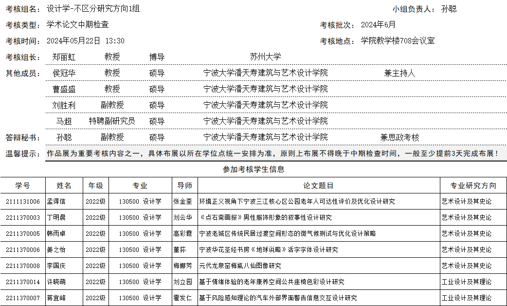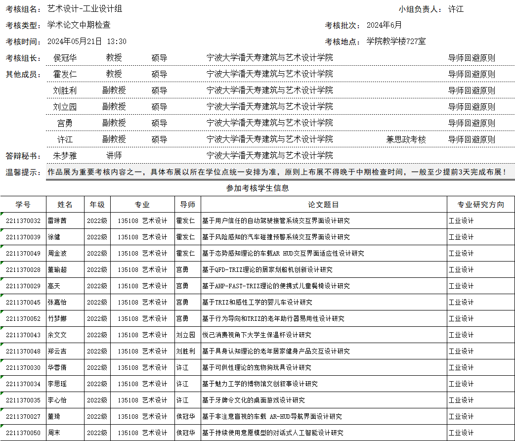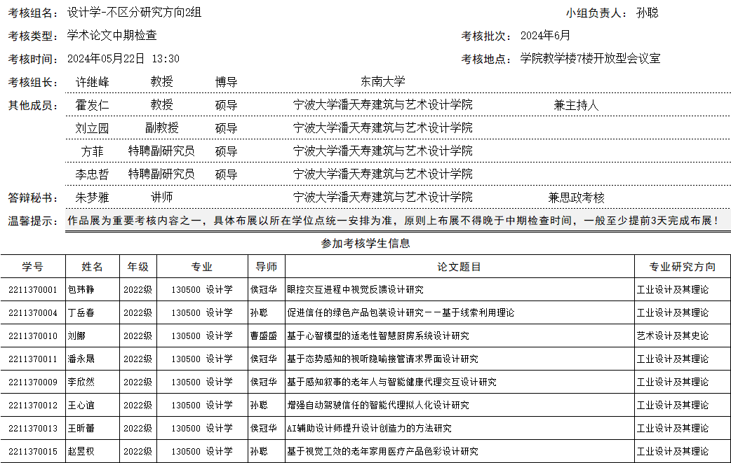 校级通知中期检查组织要求、检查内容、处理办法详见《关于开展2022级研究生学位论文中期检查的通知》()
