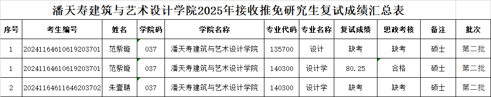 2025年接收推荐免试研究生复试面试成绩公示(第二批)