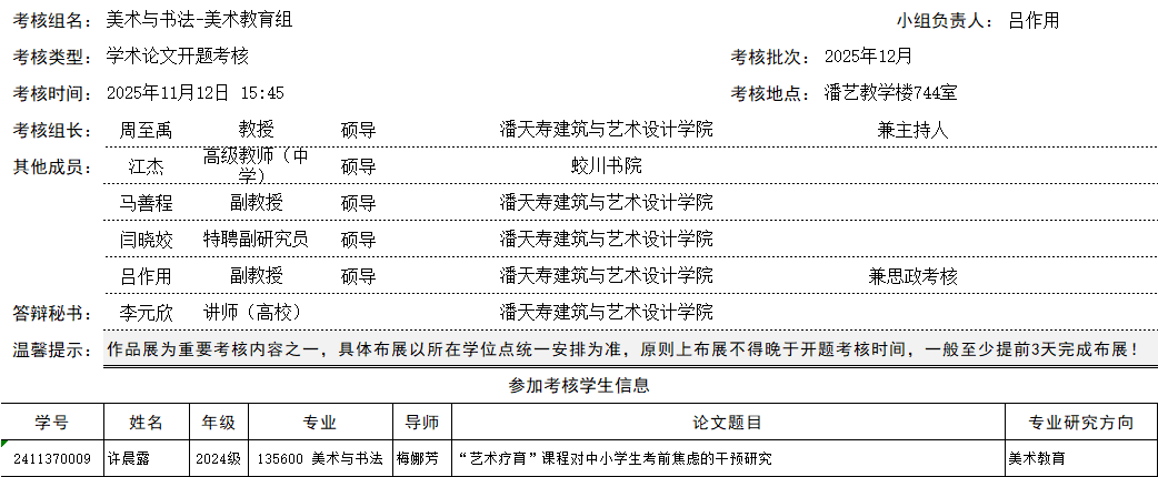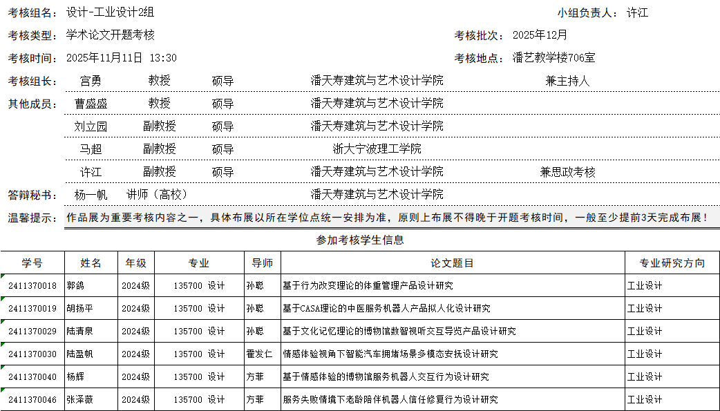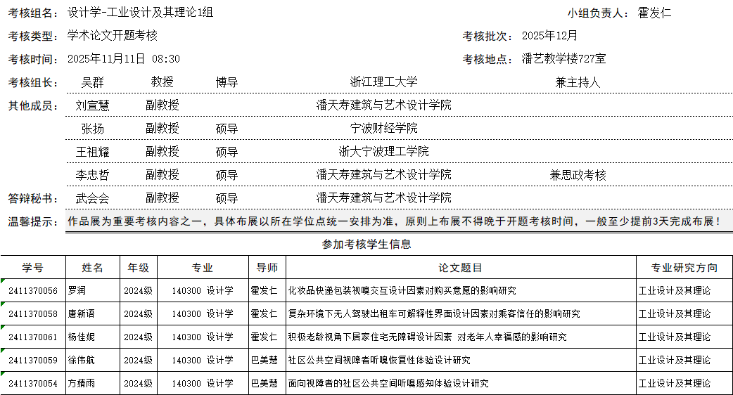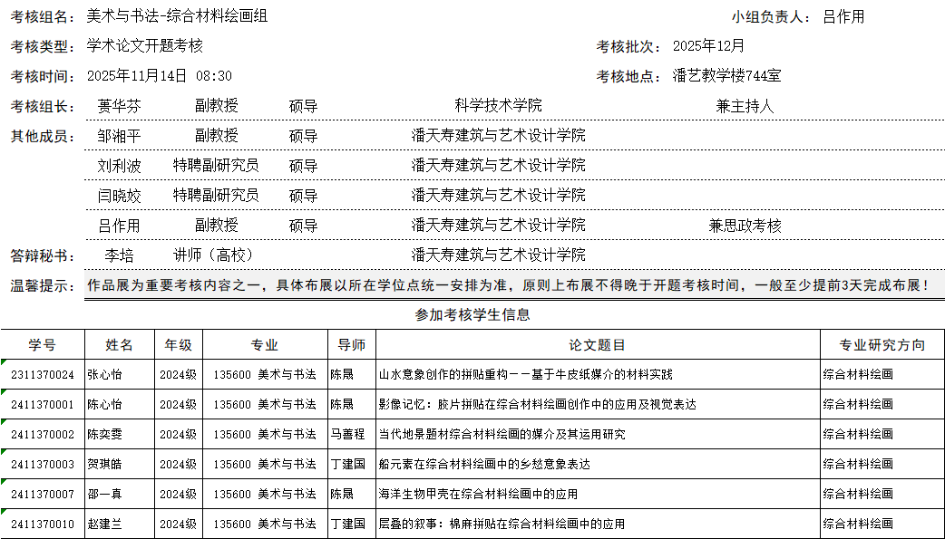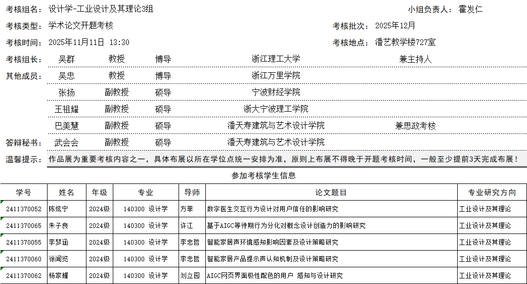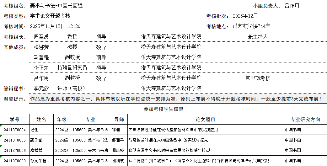 宁波大学潘天寿建筑与艺术设计学院2025年度全日制研究生学位论文开题工作安排表