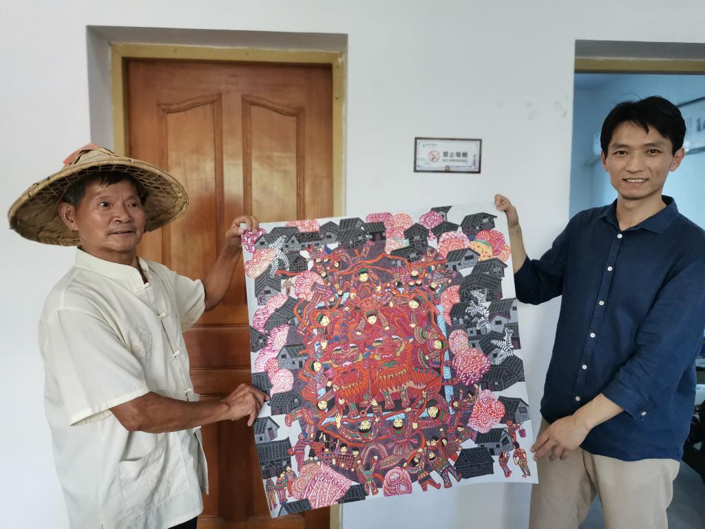 学院与沟溪乡领导、村支部书记、驻村干部及部分农民画家进行了座谈交流,双方就如何进一步提高农民画家的专业水平、如何进一步打响余东农民画研学基地品牌等事宜达成了一致意见。