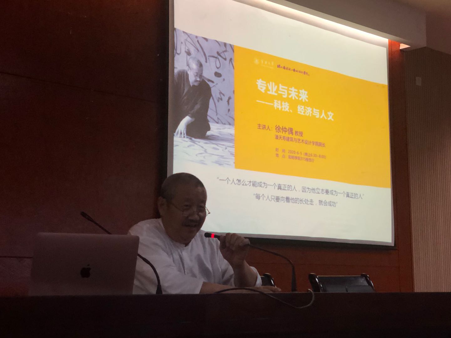 2020年6月5日18:30,潘天寿建筑与艺术设计学院特聘院长徐仲偶教授在阳明学院315报告厅,为即将进入潘院学习的大一学生展开了主题为“专业与未来”的专题讲座。