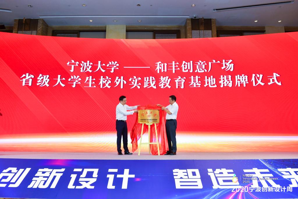 9月12日,2020宁波创新设计周在宁波泛太平洋大酒店隆重举行,宁波大学副校长乐传永与市工投集团总经理卢文祥共同为“宁波大学—宁波和丰创意广场艺术设计校外实践基地”揭牌,此基地为浙江省“十三五”省级大学生实践教育建设基地。