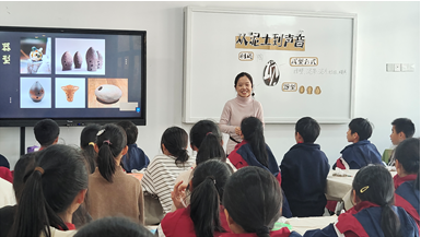 胡婕老师以音乐为导入,引出陶埙。通过设置一系列环节,以学生的兴趣为出发点,引导学生从材质、发声原理、成型方式等方面进行学习,并在实践中进行反馈。整个课堂注重学科融合以及学生自身个性的表达。